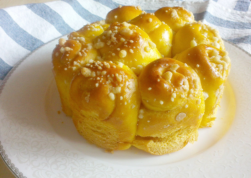 南瓜泥140g;纯牛奶100g;淡奶油100g;高筋粉500g;鸡蛋1个;黄油38g;