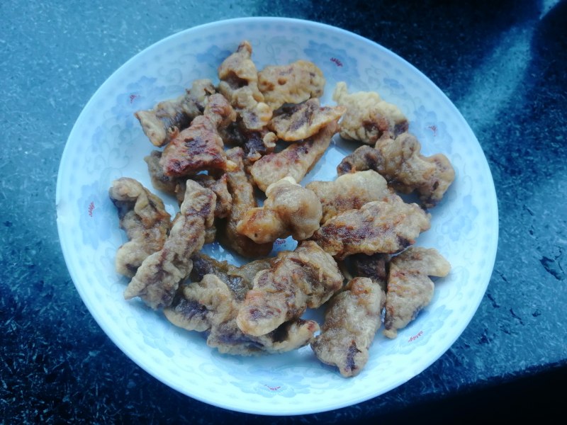 前面的忘记拍了,先把肉切成肉条腌制一下,再调粉糊,就可炸了,炸干即可。