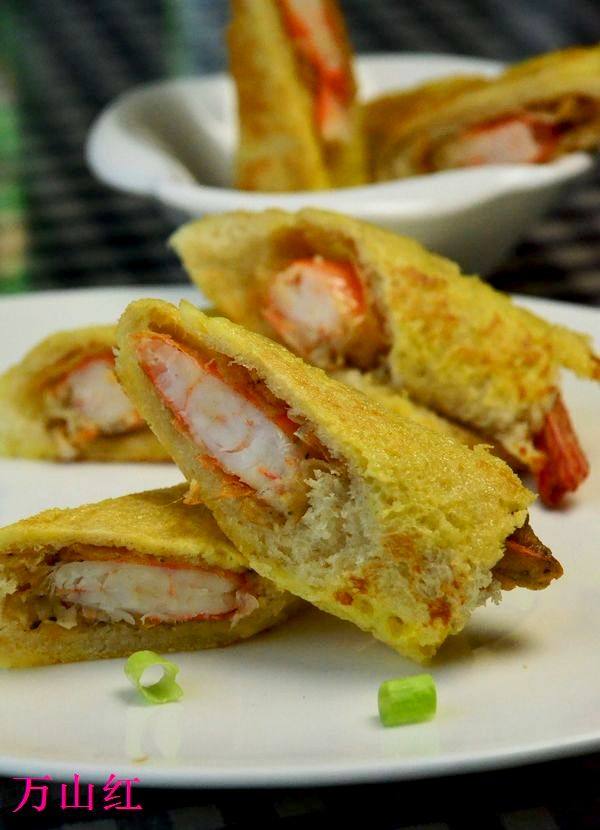 鲜虾5只;土司5片;