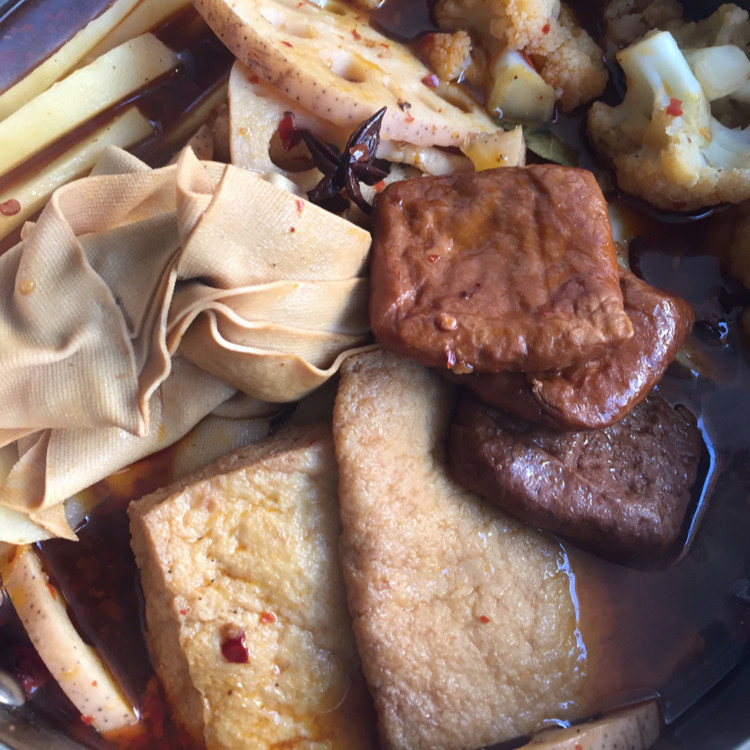 14:这是刚盛起来卤好的一锅素串串!浸泡一夜之后更好吃,也可以下次加热了吃,再放入熟的牛羊肉,生菜,青菜,大白菜,冬瓜什么的,还可以放海鲜一起煮!就像麻辣火锅一样!
