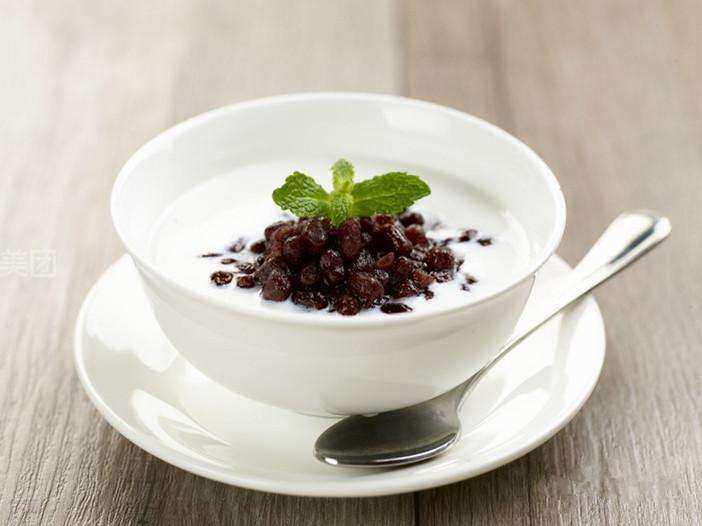 7:撕去保鲜膜,放点蜜豆就可以吃啦,或者冷却后放冰箱冷藏一段时间再吃都行。