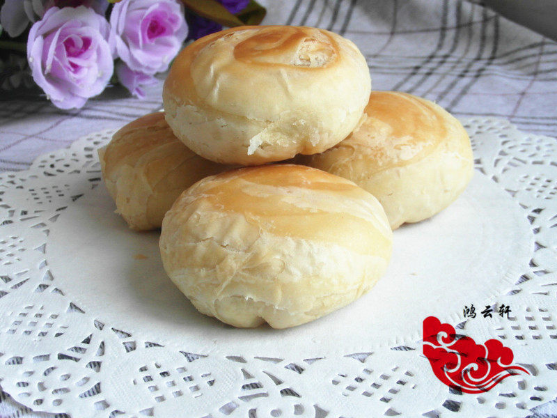 19:将酥皮送进预热好的烤箱中层,190度,25分钟左右,表面微黄,饼身膨胀;