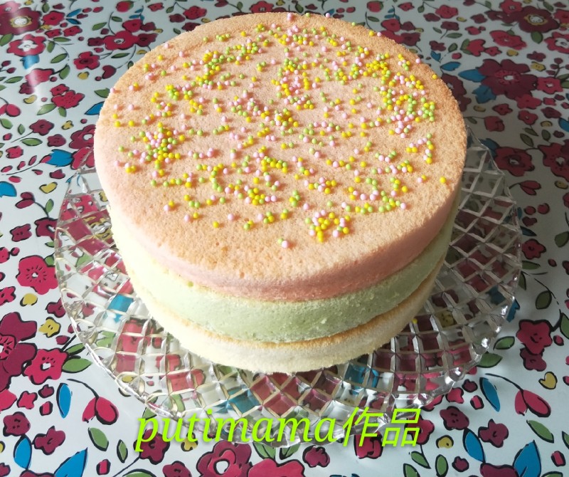30:这款蛋糕是我之前做戚风蛋糕的自配方,首次做多彩裸蛋糕只为试做,这个方的配料正好可以做三个的量。