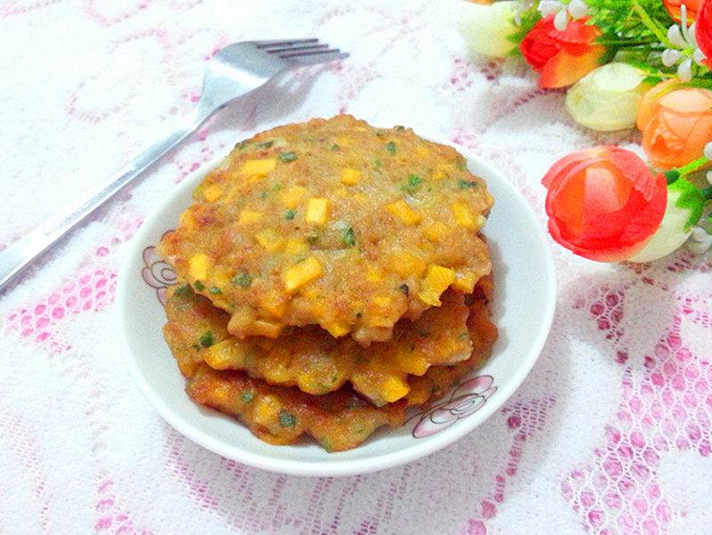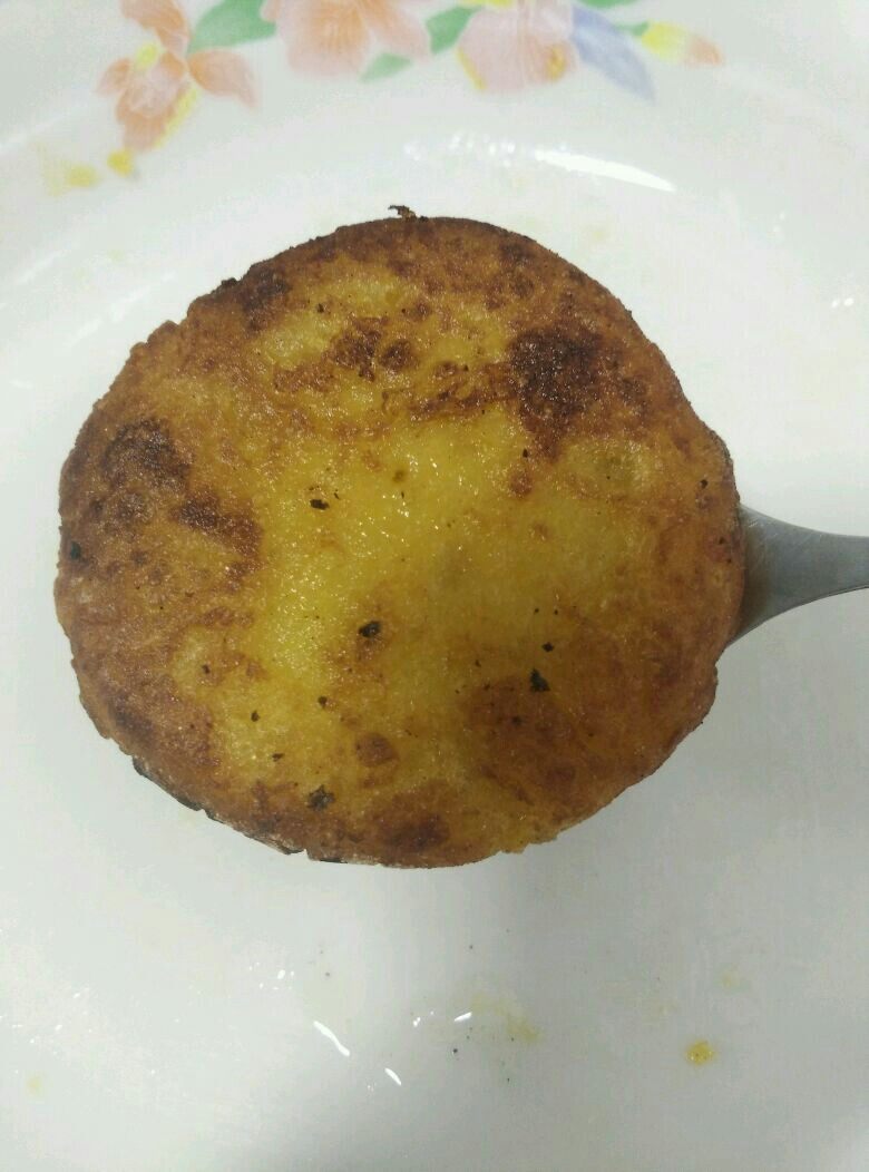 9:锅中加入适量油,大火烧热,放入红薯饼,中小火煎至呈金黄色。