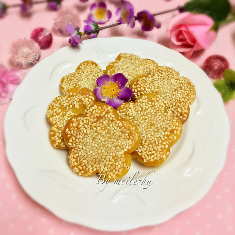 8:小心的取出成型的面团,两面都沾上白芝麻,依次做好其他的面团。