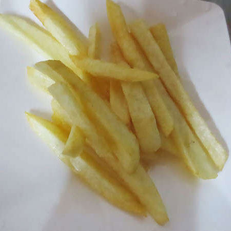 3:做好之后,吃盐的人放入少许的盐。这样薯条就做好了。