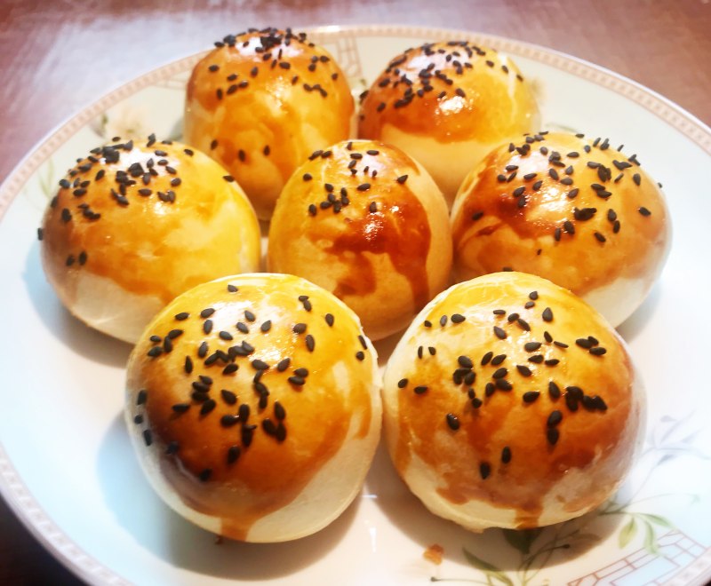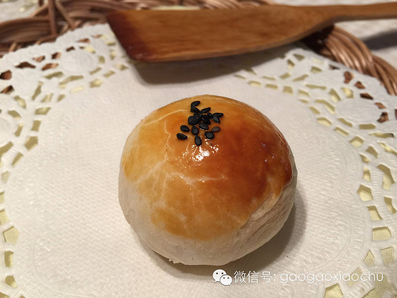 11:酥皮坯子顶上刷上蛋液,撒上白芝麻。