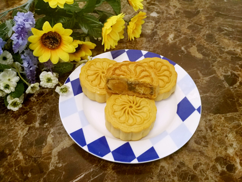 低粉130克;转化糖浆112克;高粉14克;莲蓉500克;咸蛋黄19个;
