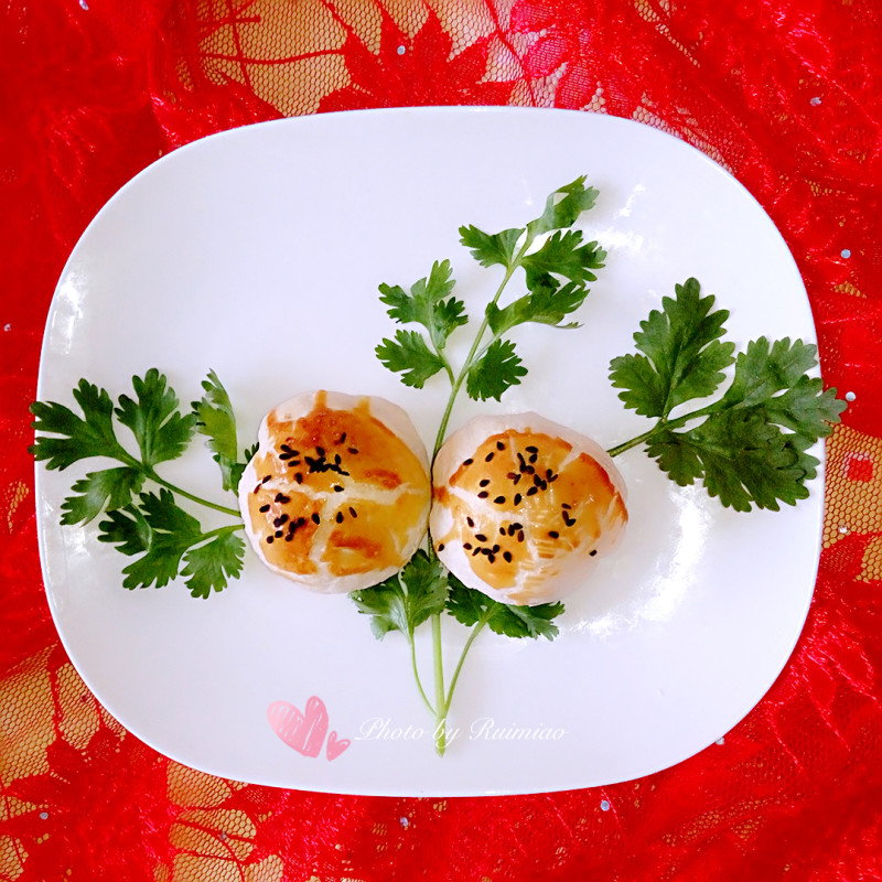 17:豆沙包不住蛋黄的话就都直接放在饼皮上。