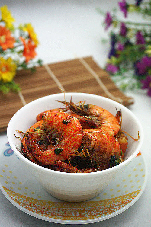 虾是易熟的食材,注意火候及炒制的时间。辣椒选择是干辣椒,因此要先过一下水,以免辣椒一炸就变黑。
