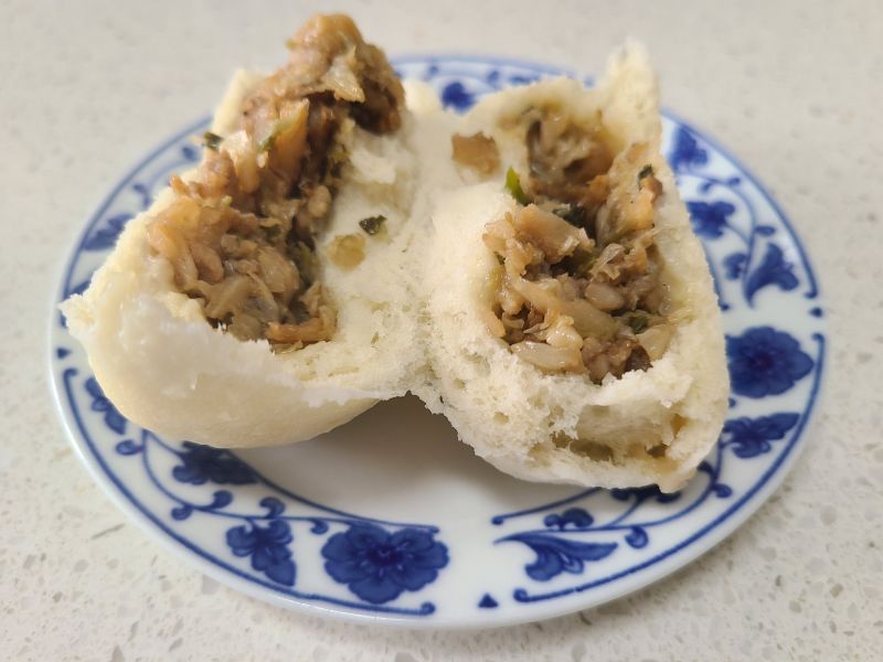 1:馅料:酸菜200克,盐适量,姜蒜末少许,花椒几颗,蚝油少许,油适量,面团:面粉220克,水110克,鲜酵母6克。
