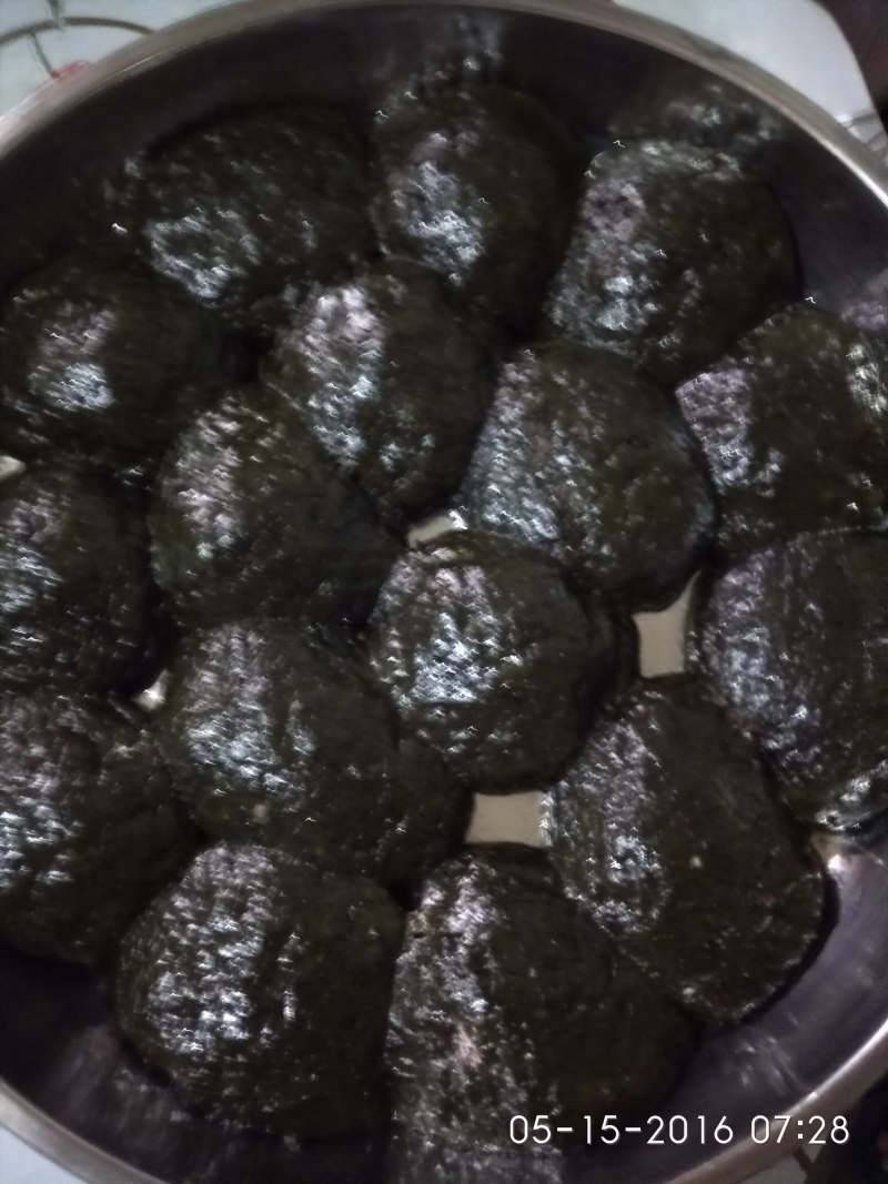 7:蒸熟了!颜色看起来黑,但实际没有黑,深绿的。吃起来香香的