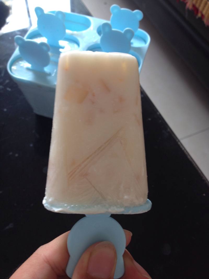 1.桃子可以根据自己喜好用葡萄,香蕉等其他水果代替咯。2.关于自制雪糕,可以加入糯米粉(注意是熟的啊),这样雪糕不至于只是冻成冰块。3.冷冻的雪糕从冰箱拿出来后稍微等一等然后比较好取下来。
