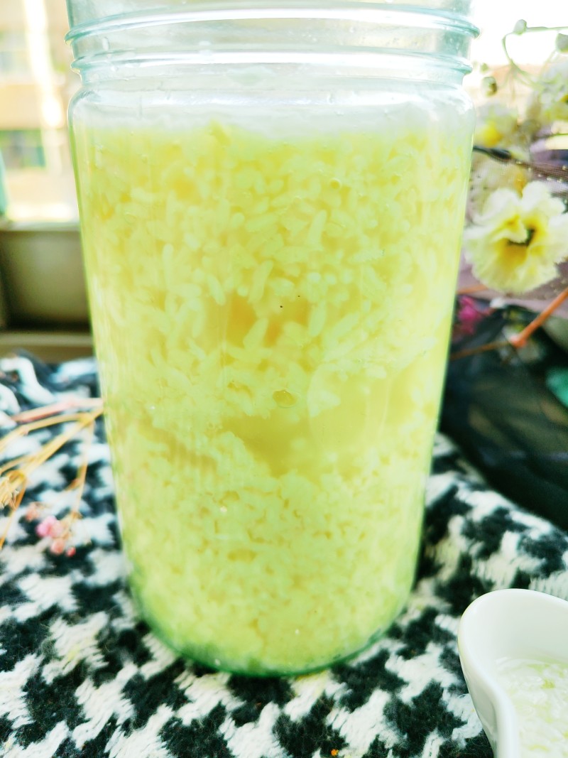 12:温度合适的话,第三天就可能出酒了,温度低,时间会延长一点。酒酿出来后,用勺子将酒水均匀地在糯米表面淋一遍,盖上,放一边静置几小时,然后就可以分装了。