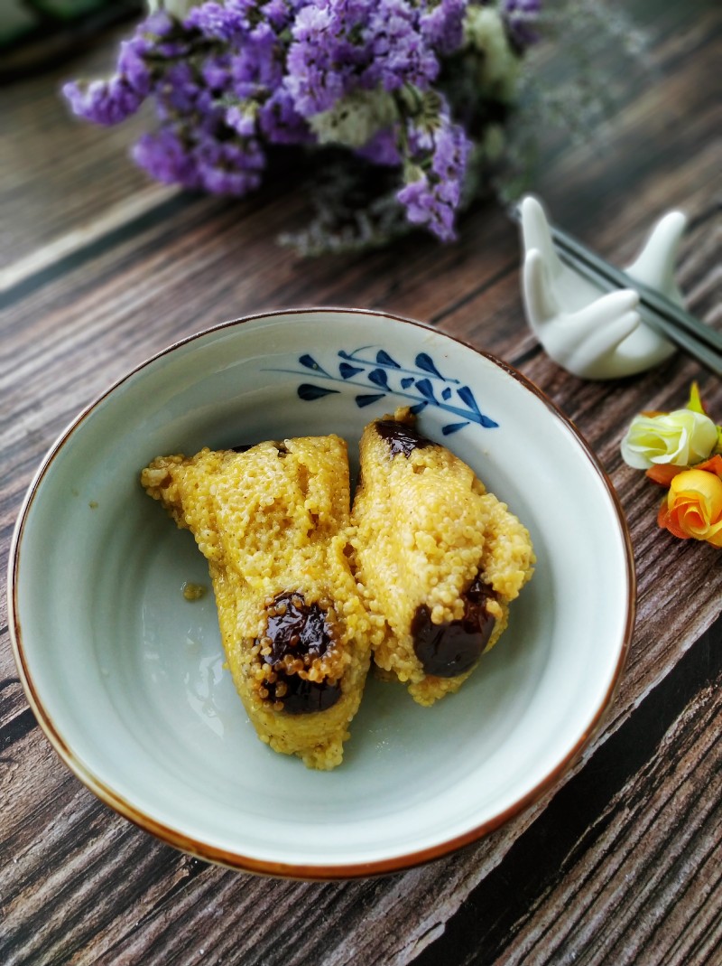 13:澄黄的大黄米中嵌着红艳的蜜枣,有人美其名曰“黄金裹玛瑙”,蘸着白糖食用,特别软糯清香。