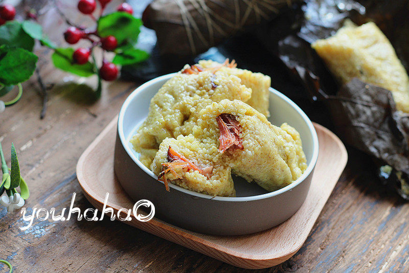 2:大黄米包粽子也是要泡米的,大黄米浸泡后更粘糯。提前一天冷水浸泡上,注意每隔3小时左右换一次水,让米粒充分吸收水分,包出来的粽子才粘糯。