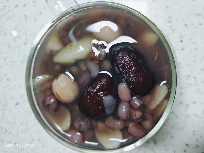 8:如果喜欢甜味的,可以同时和红豆放几粒冰糖同煮