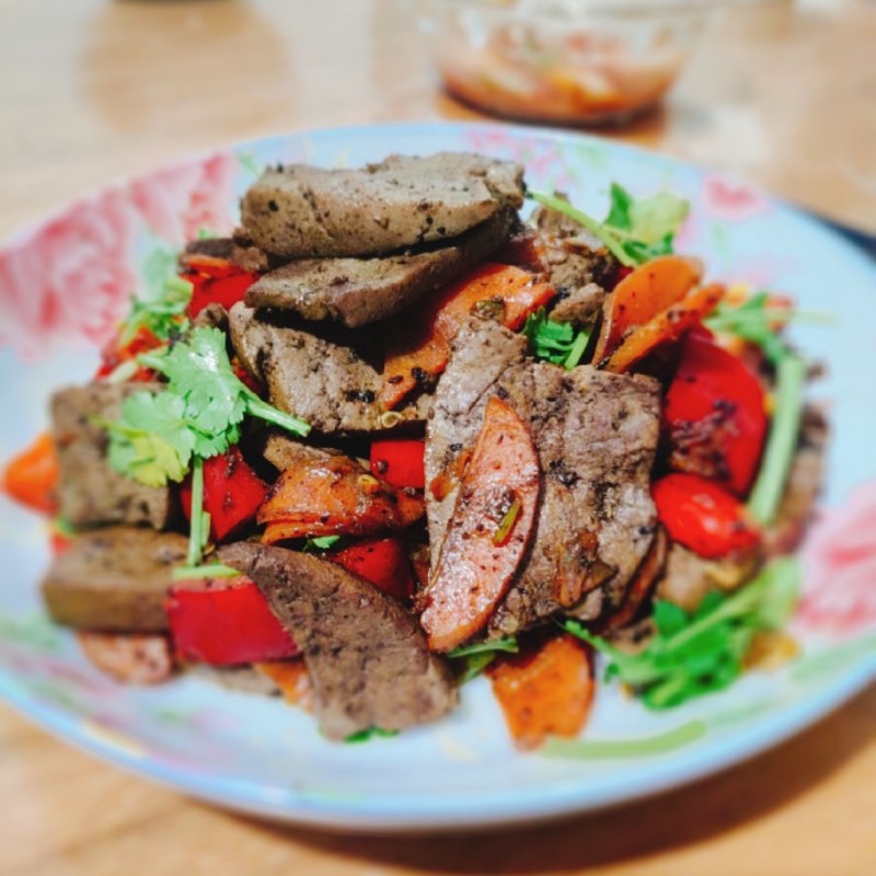 羊肝300g;辣椒1根;胡萝卜半根;