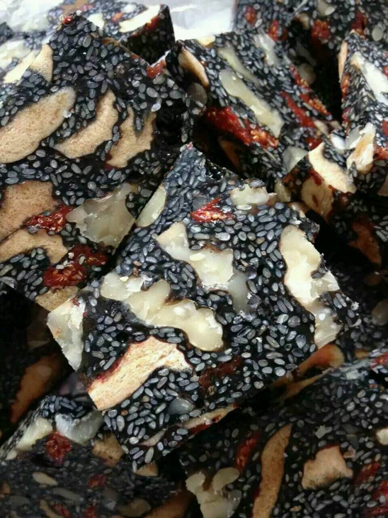 阿胶500克;红枣613克(去核);炒熟黑芝麻350克;核桃仁390克;老冰糖450克;