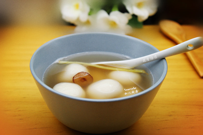 8:放入做好的花生汤圆,大火煮沸,改为小火煮,等汤圆全部浮起,汤圆即熟。