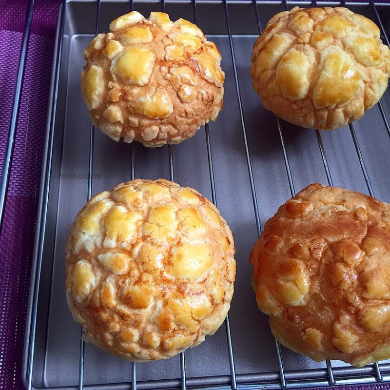 22:菠萝酥皮覆盖在面包上。