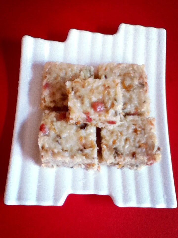 16:16.切自己喜欢的大小不粘锅煎。(切的时候,就发现自己贪心,料太多,一切都是料,不平整,下次如果再做料减少,搅细。)