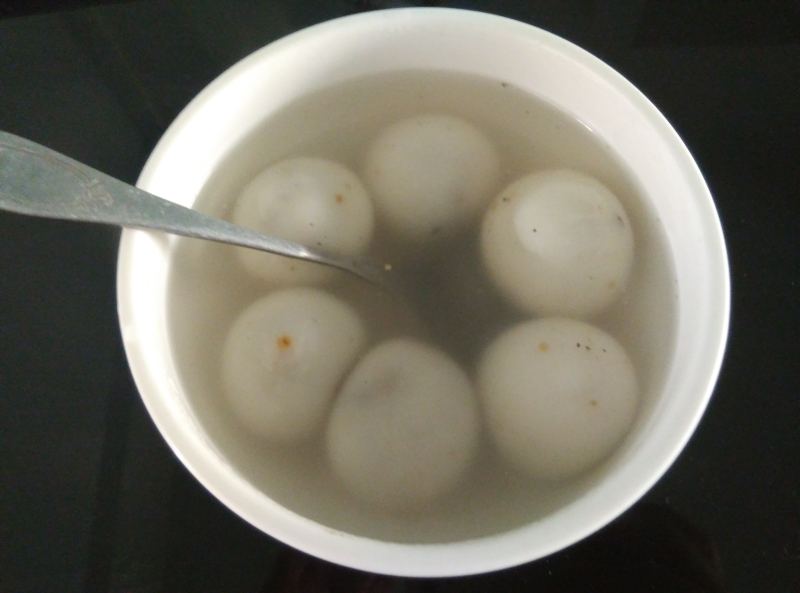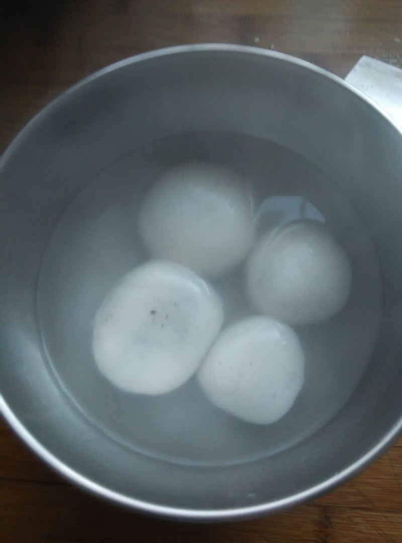 9:水开后入锅,中间点一次凉水,汤圆飘起即熟