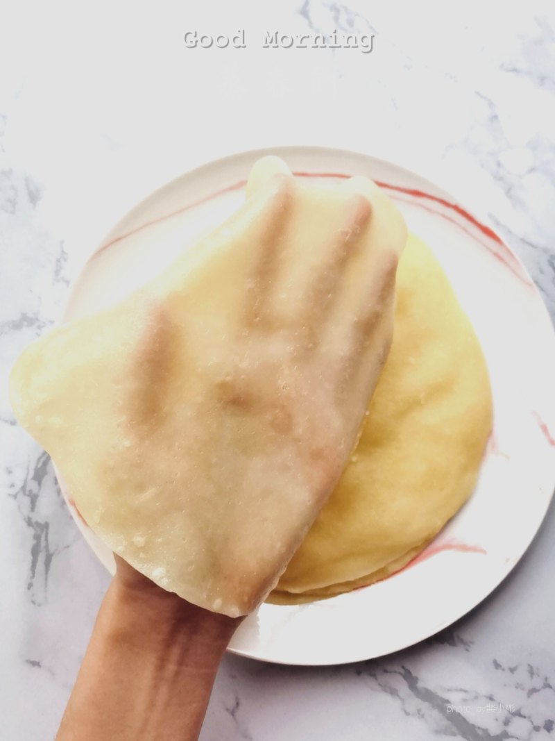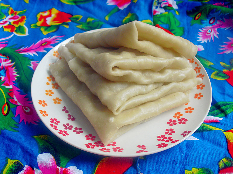 17:这些面蒸了3锅饼(每锅12张左右,共30多张薄饼)将蒸好的春饼逐张掀开,又软又薄又筋道(不用加盐,凉了也不硬)。