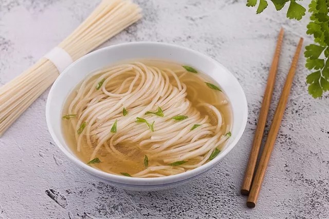 2:煮熟的挂面捞出放入碗中。倒入面汤以没过面为准。