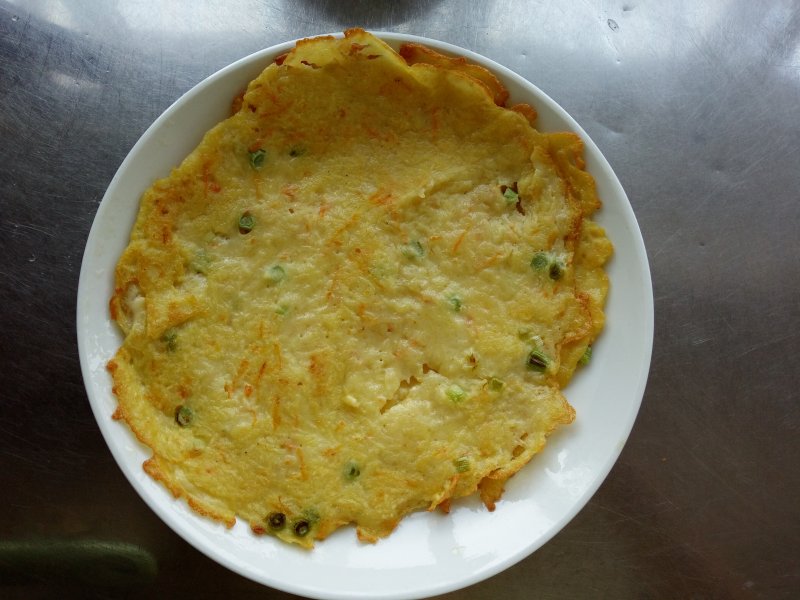 土豆1个;胡萝卜1块;面粉适量;鸡蛋1个;香葱1棵;