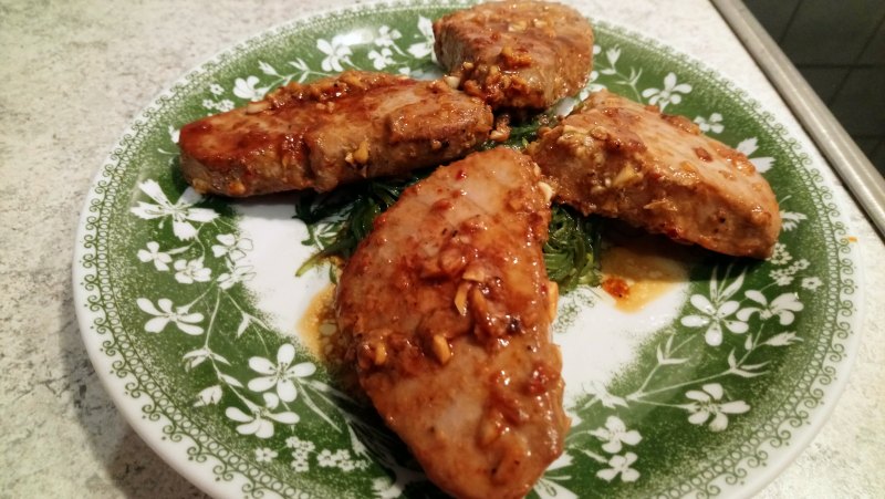 3:放入金枪鱼排,冷藏腌制至少一个小时(我腌了两个小时,已经非常入味儿了)。