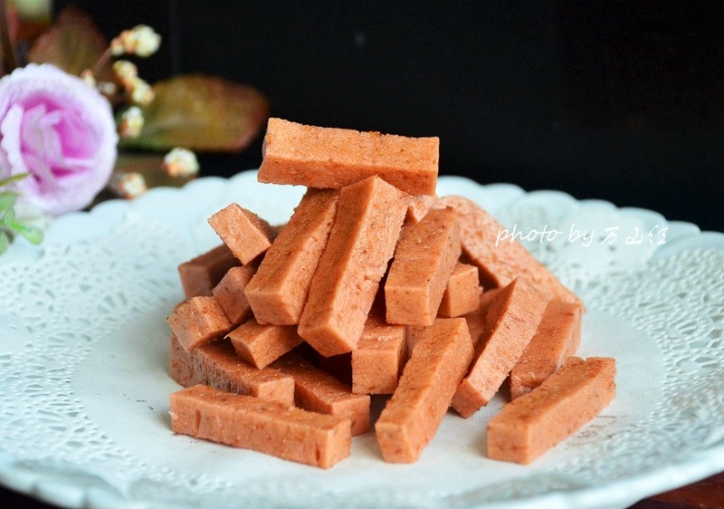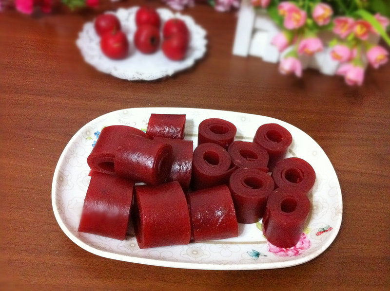 8:把凝固好山楂切片后再切成约8毫米宽60毫米长的条