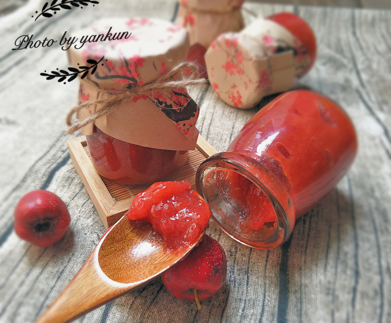 5:煮至粘稠可以盛出来放凉装瓶做成山楂酱(可以用来蘸薯条、抹面包等),剩余的山楂酱继续熬制。