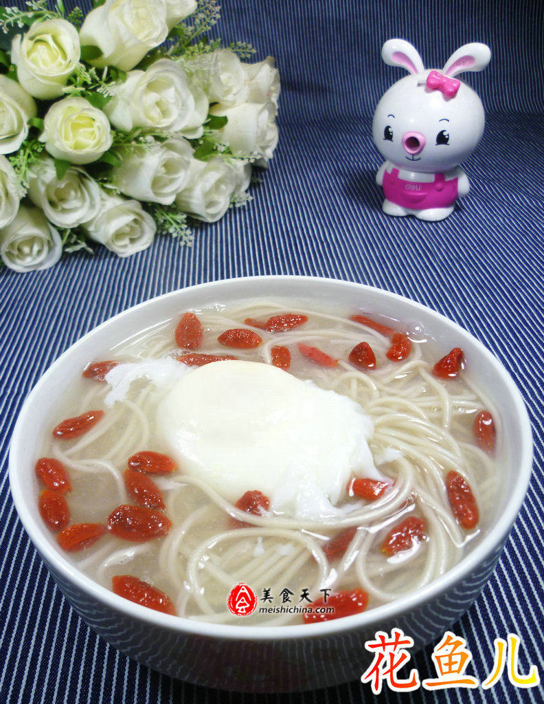 1:材料:荞麦挂面、鸡蛋、枸杞、冰糖