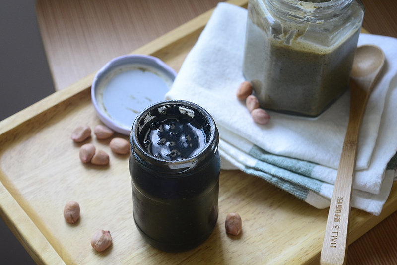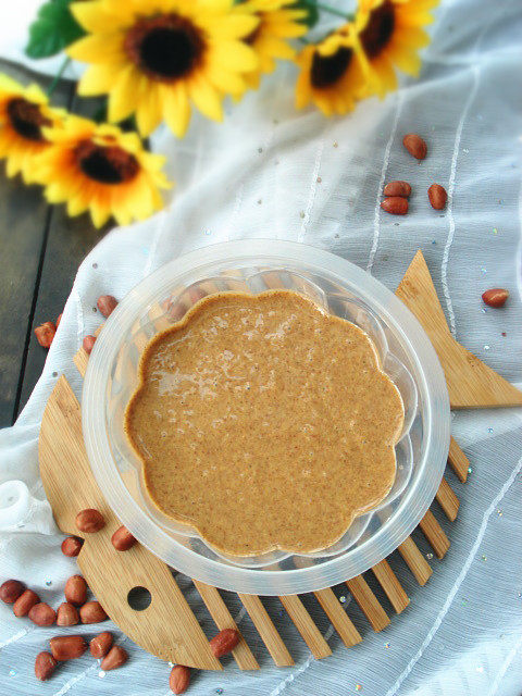 我喜欢有颗粒的花生酱,如果您喜欢口感细腻的,可以多打一会。芝麻油不要一次加入,分次加可以更好的控制花生酱的稀稠度。