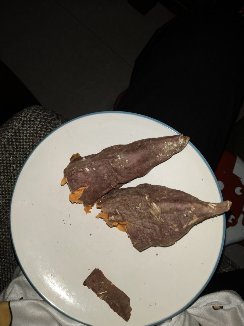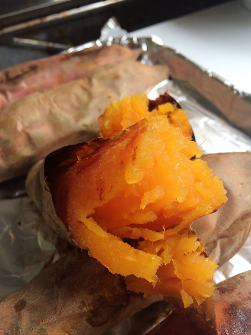 5:时间根椐地瓜的大少而定,大个的地瓜再多烤些进间。掰开一个看看好香的地瓜。