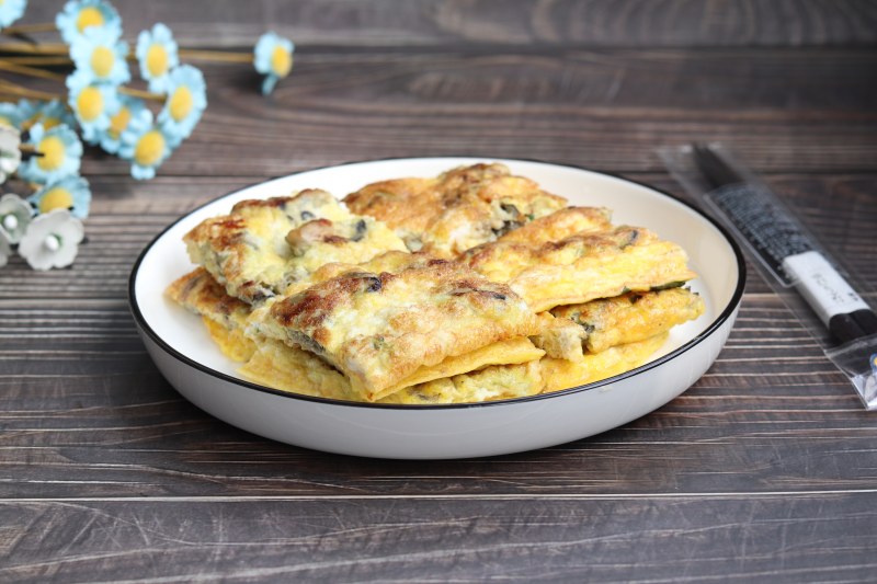 7:沿锅边倒入蛋液,煎熟出锅。