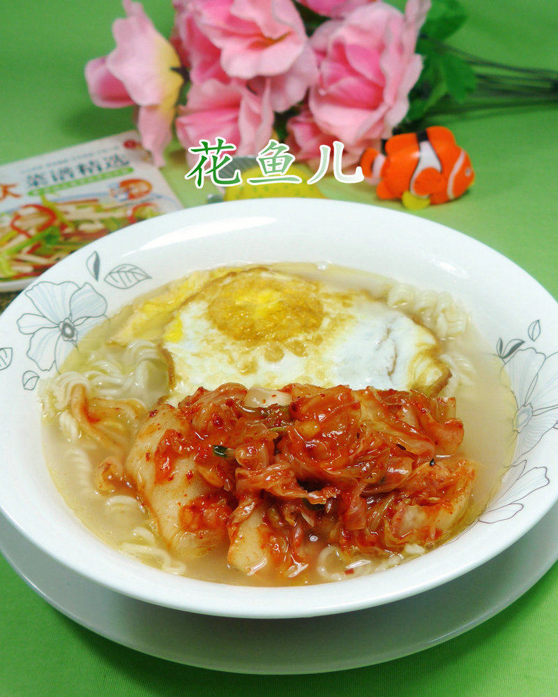 7:然后,出锅装入大碗中、搁入泡菜,即成。