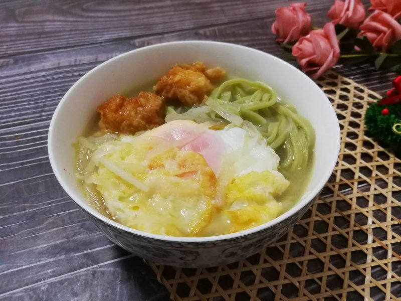 菠菜面适量;鸡蛋适量;泡鲞适量;萝卜丝适量;