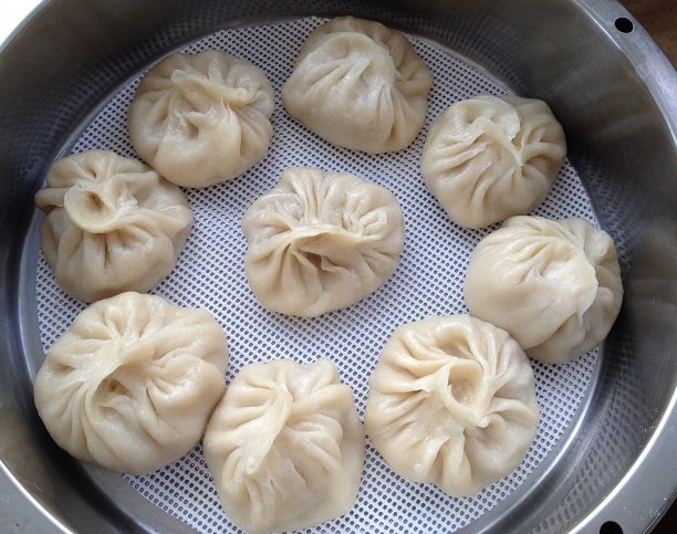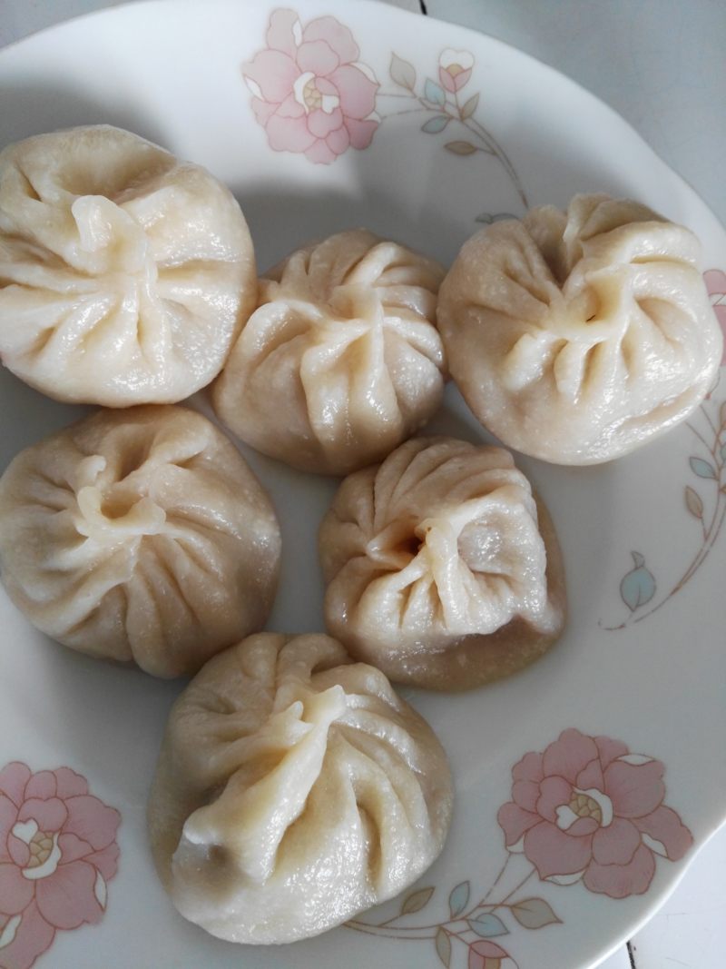 8:包好后直接上笼蒸30分钟,这个时间是上汽后的时间。要根据自己家笼屉大小适当调整,我家是那种蒸小笼包子的笼屉。