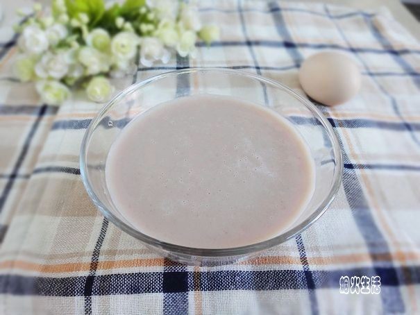 3:加入适量牛奶,稀释一下山药泥,不能太多,否则不好做出造型