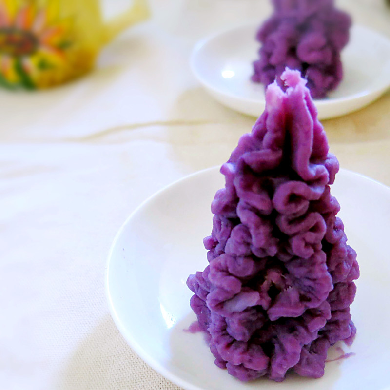3:把蒸熟的紫薯和山药分别压烂成泥状!