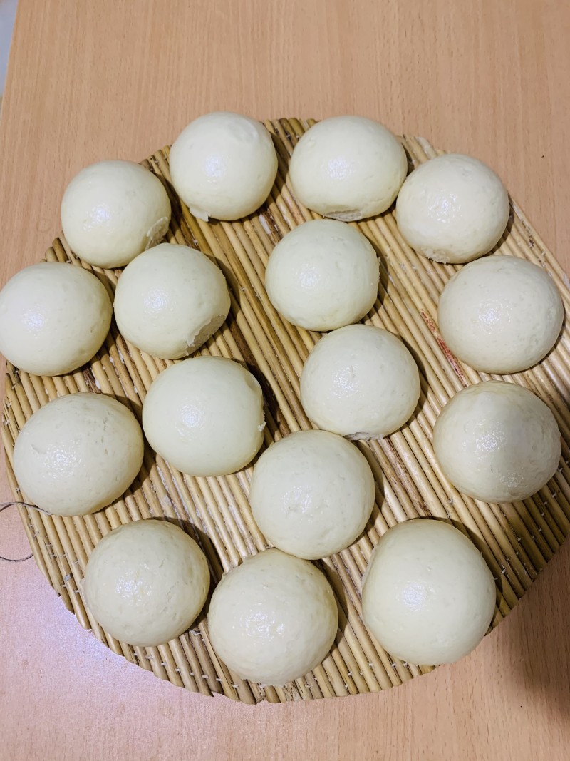 4:面开后、分成90-95克左右一个面团、然后揉圆、冷静15分钟左右。