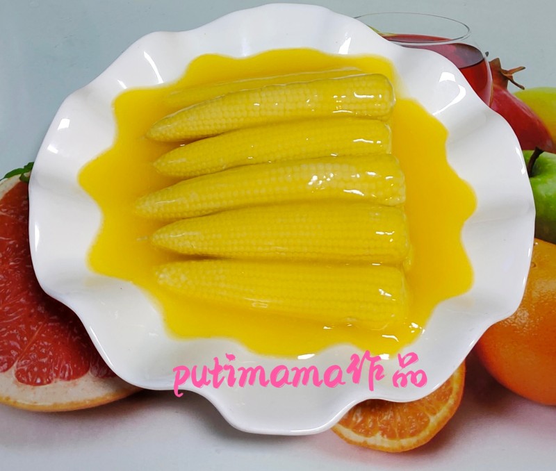 10:点缀一朵鲜花,橙汁玉米笋颜色美观,口感幼嫩爽脆、给节日餐桌增添了色彩,寓意五谷丰登、今年好收成。