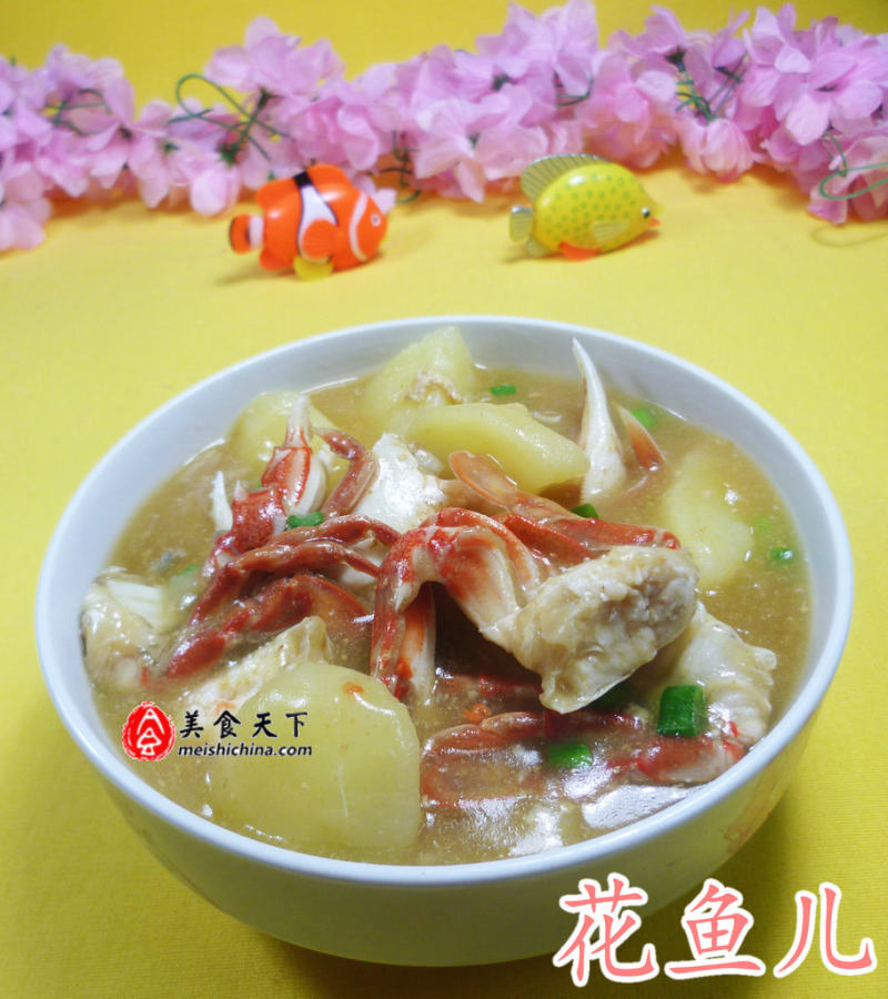 1:材料:土豆、花蟹(已清洗)、葱花、水淀粉