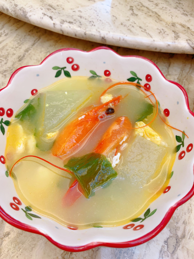 虾头适量;裙带菜适量;冬瓜适量;鸡蛋适量;虾皮适量;