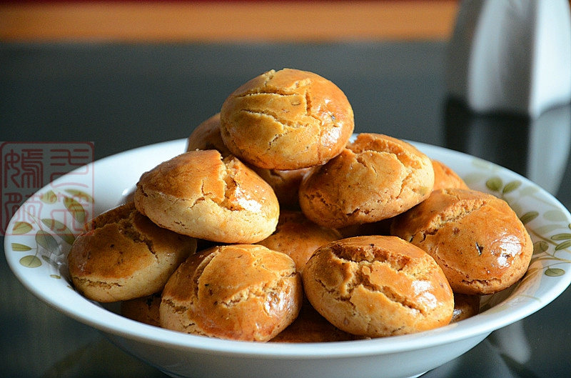 9:烤好的核桃酥表面变成金黄色,有些许开裂。