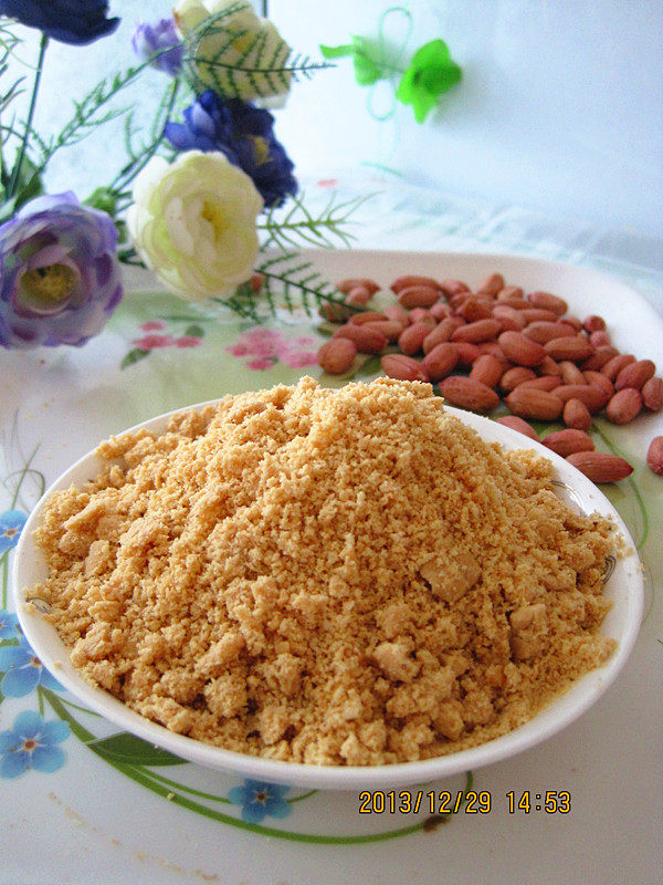 7:把去皮花生米放到料理机内,启动打粉的功能。