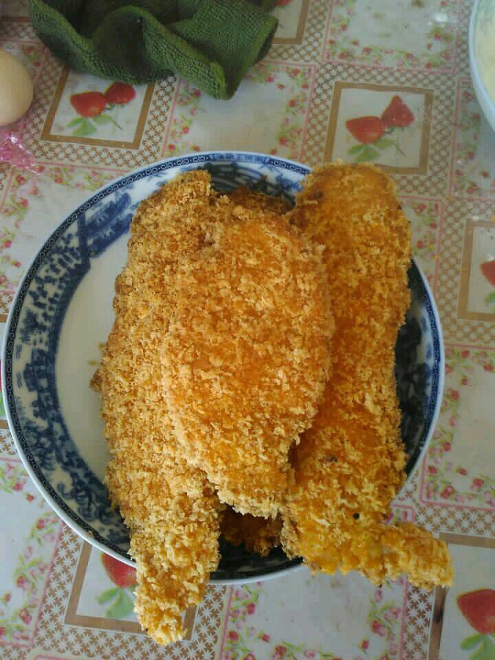 菜籽油1L;面粉20g;鸡蛋1枚;面包糠30g;盐4g;胡椒粉3g;