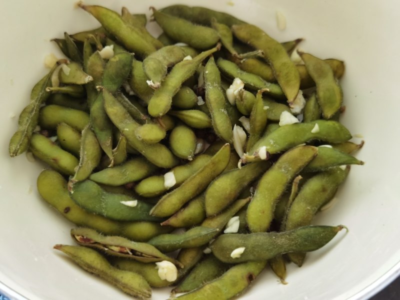 3:出锅控水以后,放蒜末和盐,拌匀。